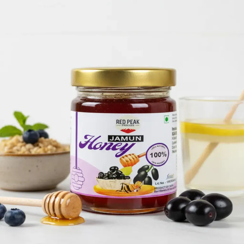 Discover the natural goodness of Jamun Honey, a rare and nutrient-rich honey collected from bees that feed on the blossoms of Jamun trees. Known for its dark color, distinct flavor, and health-promoting properties, this honey is perfect for both culinary and medicinal uses.